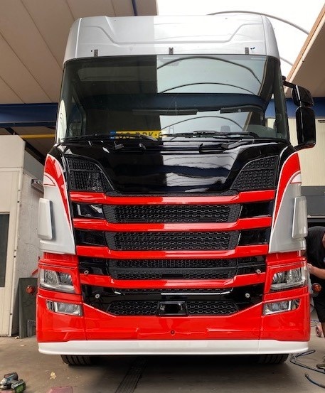 Bumper spoiler for the Scania bumper. The bumper spoiler is easy to assemble. It gives your Scania Truck a more robust look. The lower spoiler is made out of high quality polyester.